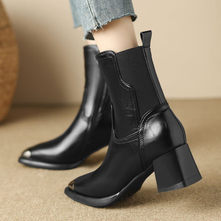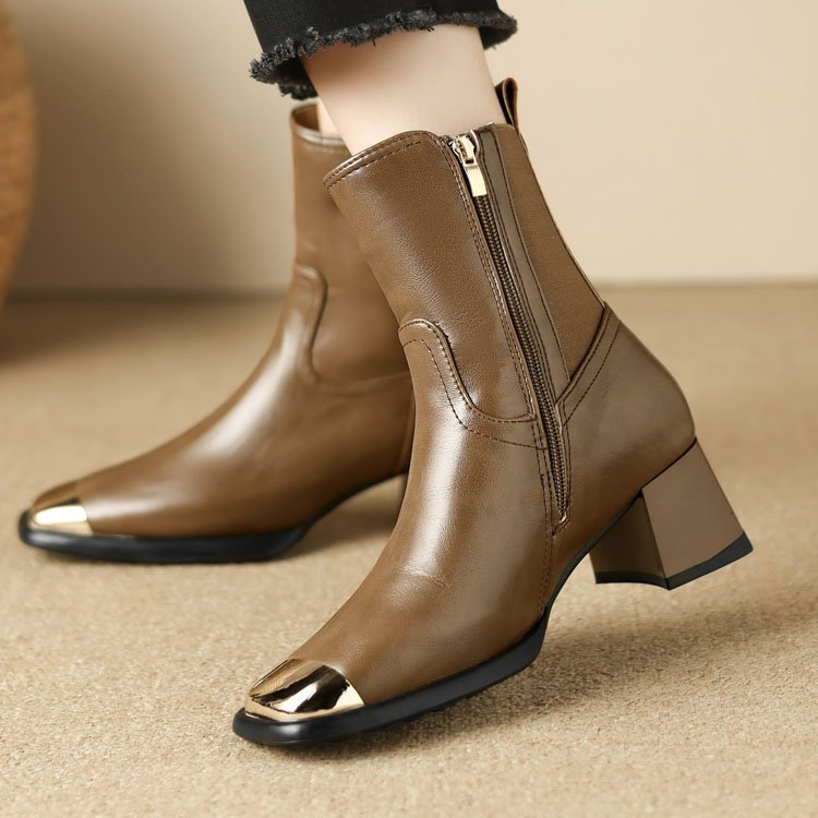 Slimming Martin Boots High Heel Maillard Leather Boots